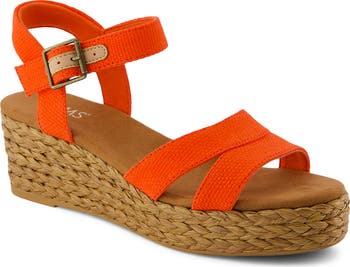 A cotton canvas upper creates a boho aesthetic on an espadrille-inspired sandal lofted by a jute-wrapped platform and integrated wedge heel.