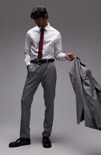 Lightly textured cotton distinguishes neatly pressed trousers tailored in a skinny fit that looks smart whether worn with casual or formal styles.