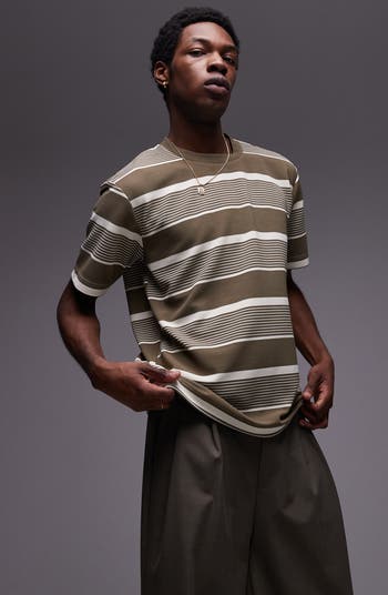 Mixed stripes add eye-catching texture and dimension to this vintage-meets-modern T-shirt in an oversized fit.