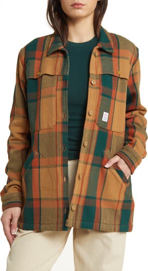 Get cozy in this rustic plaid shirt-jacket constructed from heavyweight organic-cotton twill in a comfortably oversized fit.