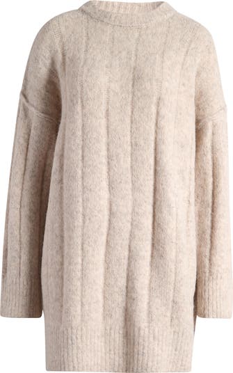 Soft and sophisticated, this day-to-night sweater-dress features an irresistible fuzzy texture and wide ribbing for a close fit.