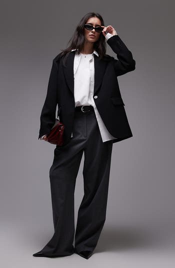 An extremely oversized fit brings a streetwise edge to this otherwise classic blazer fashioned with notched lapels.