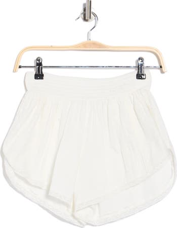 Pintuck pleats and lacy panels bring soft, sweet style to these lightweight cotton shorts topped with a smocked waist.