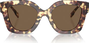 An irregular cat-eye silhouette brings retro-inspired glamour to sleek sunglasses featuring signature double-T medallion logos at the temples.