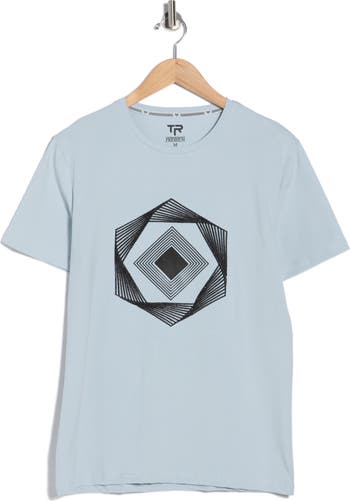 Comfort meets creativity in this stretch-enhanced cotton T-shirt featuring a three-dimensional abstract graphic.