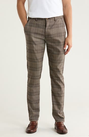 Smart plaid checks cover these work-to-weekend pants cut from stretch-enhanced fabric and styled with a straight leg.