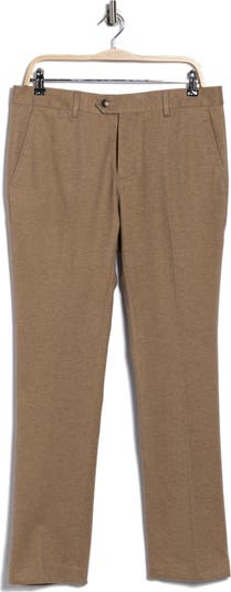 Dress to impress in these slim-fitting dress pants with a polished flat-front silhouette and cut from stretch-kissed fibers in a timeless solid hue.