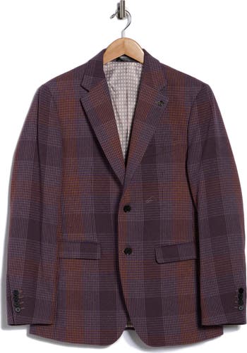 A bold patterned lining furthers the dapper style of this two-button blazer designed in a slim silhouette and featured with a hint of stretch for casual comfort.