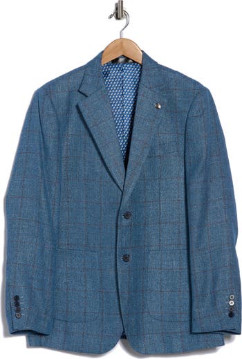 A bold patterned lining furthers the dapper style of this two-button blazer designed in a slim silhouette and featured with a hint of stretch for casual comfort.
