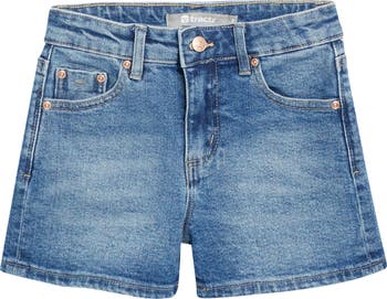 Get your kid ready for sunny days with classic five-pocket shorts cut from faded cotton-blend denim with subtle stretch.