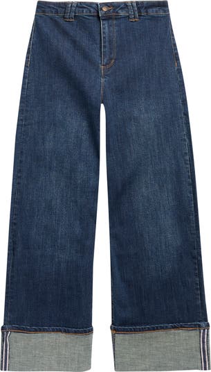 Wide cuffs add trend-right flair to these kid-approved jeans finished with a retro high rise.