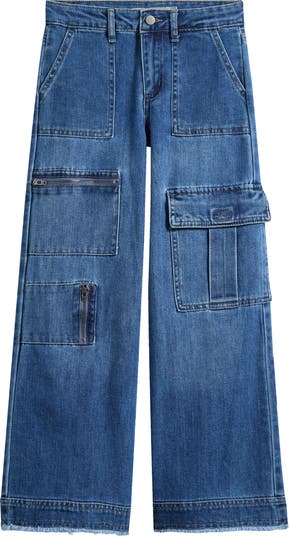 Give your kid instantly cool style with this multipocket cargo jeans cut from comfortable cotton-blend denim in a wide-leg silhouette.