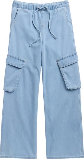 Give your kid timelessly cool style with these wide-leg jeans fashioned with a comfy elastic-drawstring waist and roomy cargo pockets.