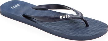 Subtle branding tops off a laid-back Italian thong sandal featuring a cushy footbed for a customized fit.