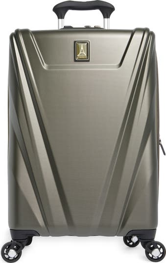 Exterior features: Water-resistant polycarbonate material with a textured surface ensures lightweight durability and protection. A telescoping handle maximizes comfort and control for users of different heights. Four double-wheel spinners glide effortlessly to navigate through busy airports.