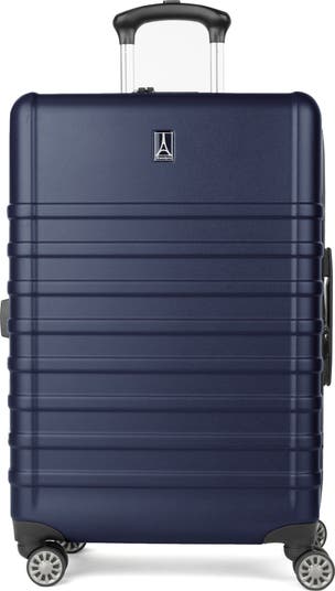 Exterior features: Water-resistant ABS and flexible polycarbonate material with a textured surface ensures lightweight durability and protection. A telescoping handle maximizes comfort and control for users of different heights. Four double-wheel spinners glide effortlessly to navigate through busy airports.