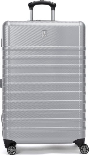 Exterior features: Water-resistant ABS and flexible polycarbonate material with a textured surface ensures lightweight durability and protection. A telescoping handle maximizes comfort and control for users of different heights. Four double-wheel spinners glide effortlessly to navigate through busy airports.