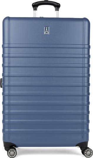 Exterior features: Water-resistant ABS and polycarbonate material with a textured surface ensures lightweight durability and protection. A telescoping handle maximizes comfort and control for users of different heights. Four double-wheel spinners glide effortlessly to navigate through busy airports.