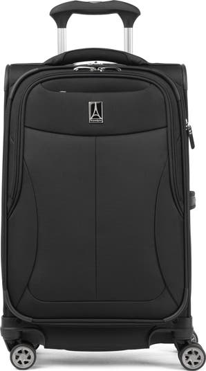 Exterior features: A water-resistant fabric protects from the rigor of travel. The push-button extension handle has two stops, maximizing comfort and control for users of different heights. Meanwhile, the eight-wheel spinners are simple to navigate through busy airports and glide effortlessly in every direction.