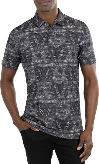 A leafy stripe print brings tropical vibes to a classic polo constructed from a breathable cotton blend.