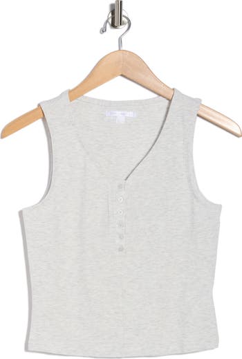 Every closet needs this essential layering tank designed with a button half placket and fine allover ribbing.