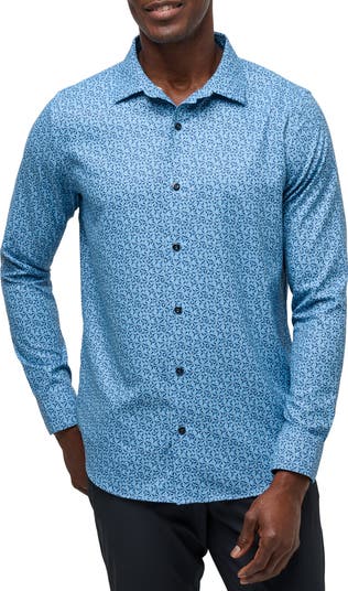 Understated flowers neatly pattern a shirt made with a wrinkle-resistant finish that keeps you looking sharp day and night.