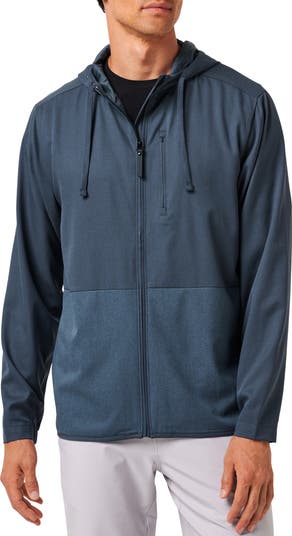 Lightweight and layerable, this jacket constructed with subtle colorblocking features lots of comfortable stretch and a drawstring hood to extend your coverage in the cold. A trio of pockets keeps hands covered and small essentials conveniently stowed.