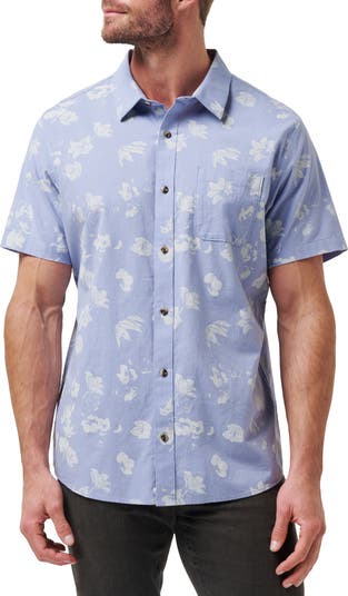A tropical pattern blooms across the cotton-rich fabric of this short-sleeve button-up elevated with added stretch for comfort that moves with you.