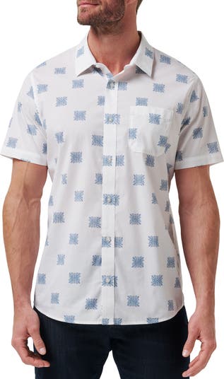 Floral-patterned geometries neatly punctuate a shirt cut from a crisp cotton blend that resists wrinkles to keep you looking smart and offers plenty of stretch to keep you feeling comfortable.