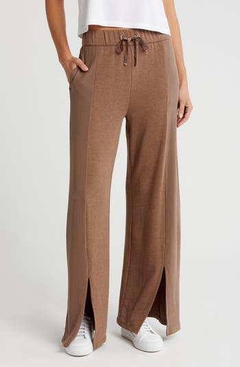 Front slits bring extra movement and flow to these sweatpants cut from buttery soft knits in a mix of smooth and ribbed textures that add subtle depth and dimension to your kicked-back look.