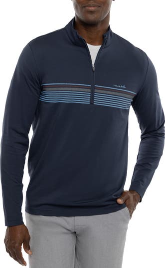 Textured stripes across the chest bring subtle pops of color to this performance-inspired pullover crafted with plenty of stretch for easy, all-day movement.