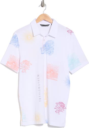 A vibrant passport-inspired brings vacation-ready vibes to this cool, cotton-forward polo.