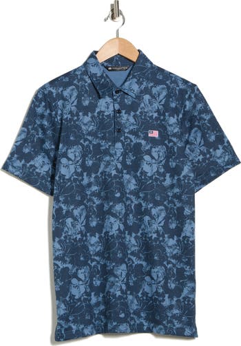A wardrobe-staple polo featuring an embroidered flag at the chest is crafted from floral-patterned knit fabric that'll keep you comfortable wherever the day takes you.