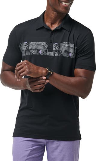 Subtle pops of color accent the graphic spanning the chest of this polo cut for a classic fit from a cool, breathable knit with plenty of stretch.