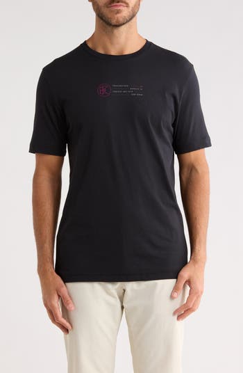 A logo graphic takes center stage on this cool cotton T-shirt made for laid-back days.