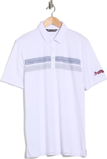 A wardrobe-staple striped polo featuring Atlanta Braves embroidery at the sleeve is crafted from knit fabric that'll keep you comfortable wherever the day takes you.