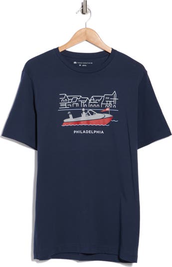 Refresh your laid-back closet staples with this all-cotton T-shirt featuring a Philadelphia boat-inspired logo graphic.