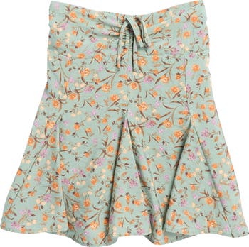 Your child can kick around with abandon in this lightweight gored skort created in a pretty flowered pattern and finished with ruched drawstrings at the wide waistband.