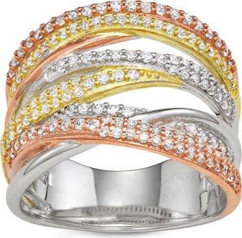 Sparkly cubic zirconia illuminate this glamorous multiband ring with a chic tri-tone finish.