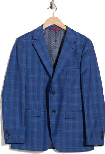 Put a polished finishing layer on your look with this trim-fit sport coat covered in classic plaid.