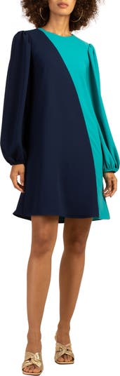 Diagonal colorblocking gives a dramatic flourish to a breezy shift dress that has you looking polished from your special celebration and beyond.