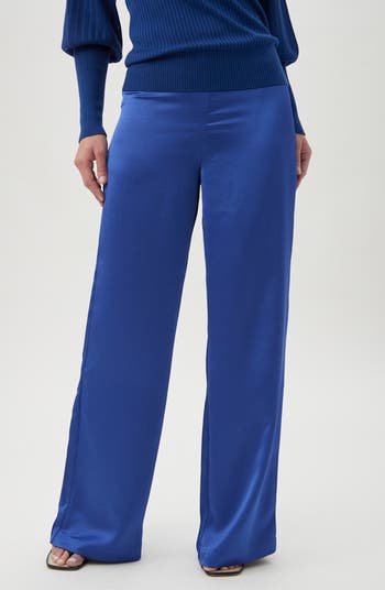 A wide-leg silhouette gives a trend-forward look to these woven pants that are a refined look for in-office or off-duty occasions.