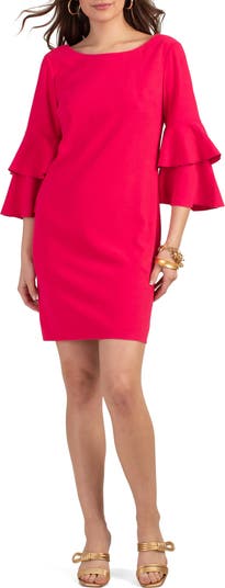 Tiered, ruffled cuffs give a dramatic flourish to a party dress rendered in an eye-catching hue that excites and delights as you hit the dance floor.