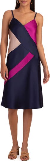 Colorblock panels bring an artistic vibe to a smooth slipdress cut in an elegant A-line silhouette.