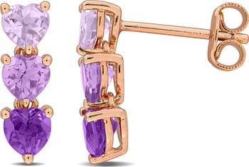 Show off romantic sparkle with these dainty stacked amethyst heart stud earrings crafted from sterling silver with a warm rose-goldtone finish.