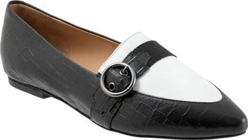 Sleek and buttery-smooth leather lends instant polish to a buckle-strap loafer flat crafted with lightly padded cushioning for comfort.