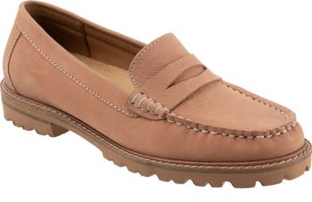 A cushy interior offers day-to-night comfort in a sophisticated loafer shaped from smooth leather and set on a durable lugged sole.