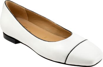 A squared-off cap toe adds contemporary intrigue to a rich leather flat grounded by a cushioned insole for comfortable wear.