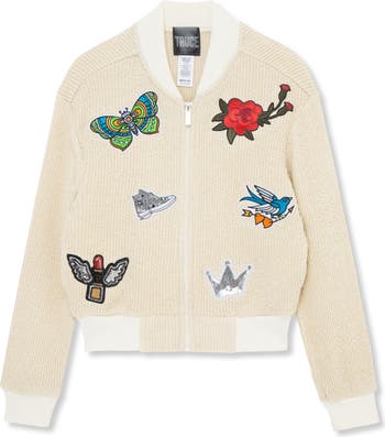 Decked out with all their favorite things and knit from textured yarns to keep them cozy, this kid-approved appliqué jacket is one you'll reach for on repeat.