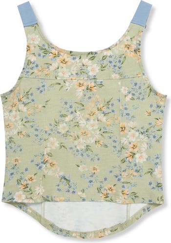 Vintage-look blooms cover a stretch-enhanced cotton tank top made with a curved-hem and adjustable D-ring straps.